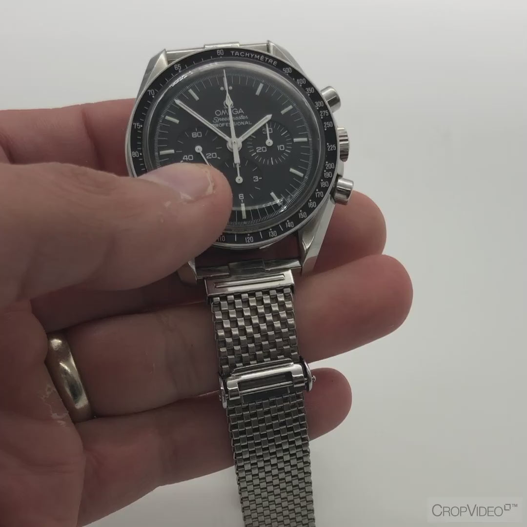 The Forstner Flat Link bracelet is similar in construction to the "standard" bracelet that comes with the Omega Speedmaster, and can be worn and adjusted in the same manner. Below are instructions for using and sizing the bracelet.