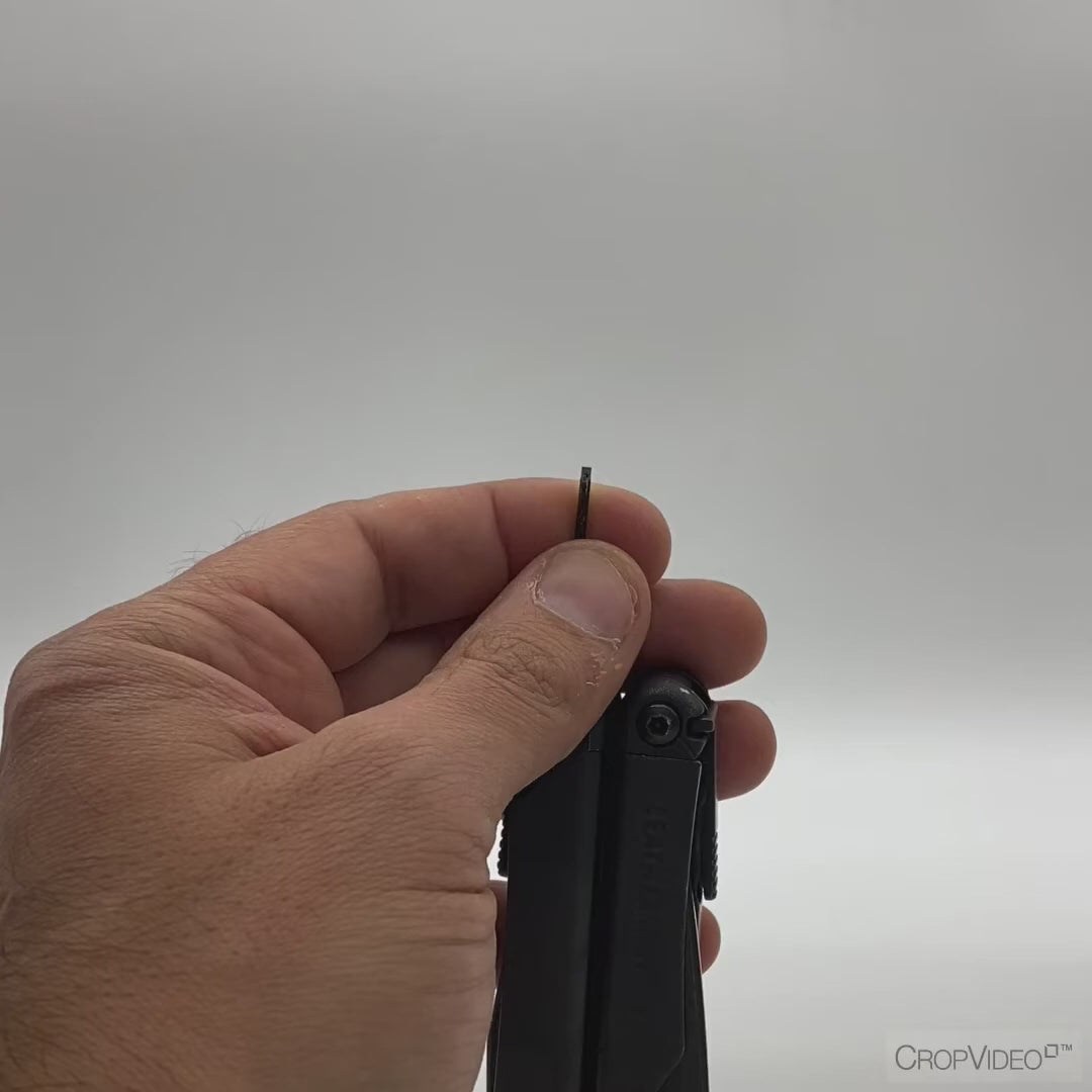 First, unscrew the sizing tool provided with the milled clasp so that the front end of the clasp (the end where the clasp secures shut) can fit within the tool.